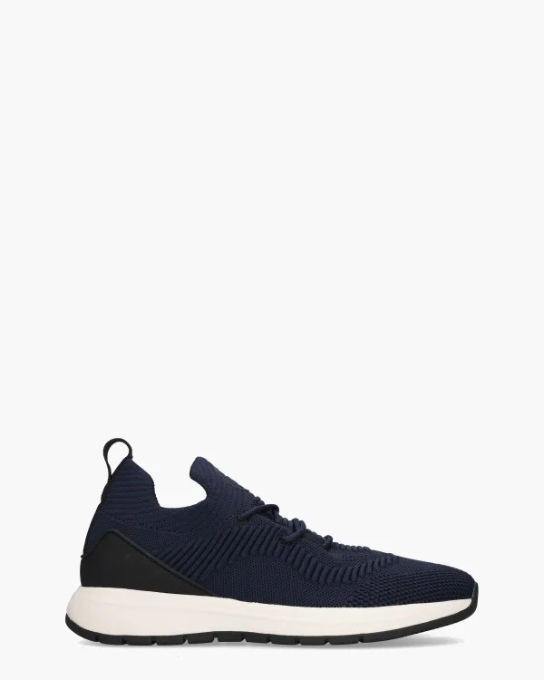 De Zeyn van Daniel Kenneth laat zien hoe comfort en design elkaar versterken. Deze herensneaker in donkerblauw is uitgevoerd in stevig mesh met verschillende breistructuren, wat zorgt voor een dynamische en luchtige uitstraling. Zwarte rubberen en synthetische details geven extra contrast. Binnenin zorgen de combinatie van