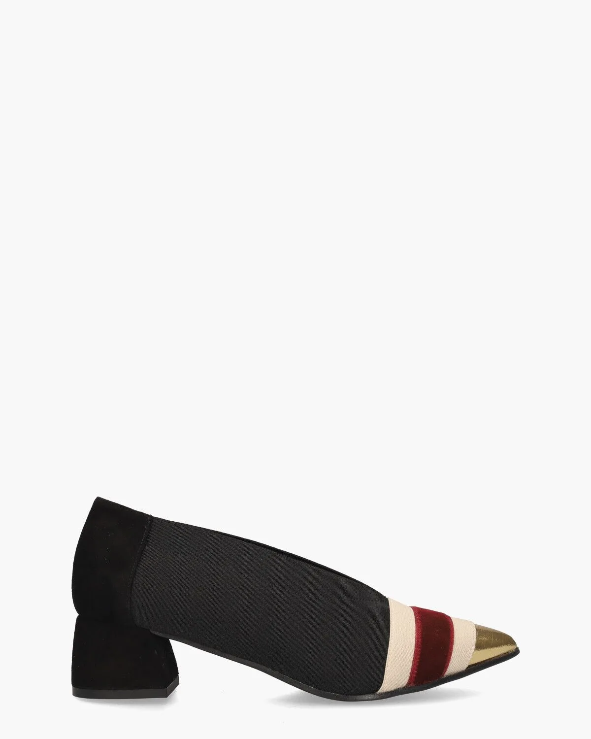 Mollie pumps voor dames van het Italiaanse merk Daniele Ancarani. Deze elegante pumps op een spitse leest combineren suède met elastisch materiaal in verschillende blauwtinten. De volledig leren binnenkant, inclusief het voetbed, zorgt voor een luxueus draagcomfort. De donkerblauwe suède blokhak van ongeveer 4,5 cm hoog geeft een speelse