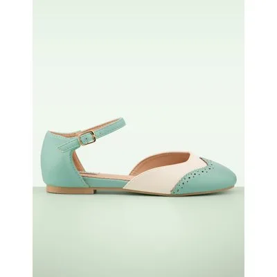 ''Shoe love is true love!'' Je kunt niet anders dan verliefd worden op deze schattige platte ballerina's! Uitgevoerd in mintgroen en ivoorwit imitatie leder met brogue details en een verstelbaar enkelbandje. * Ballerina * Imitatie leder * Verstelbaar enkelbandje * Comfortabel voetbed * Anti-slip zool