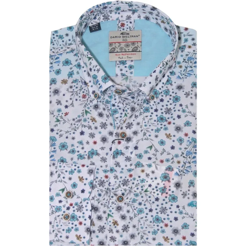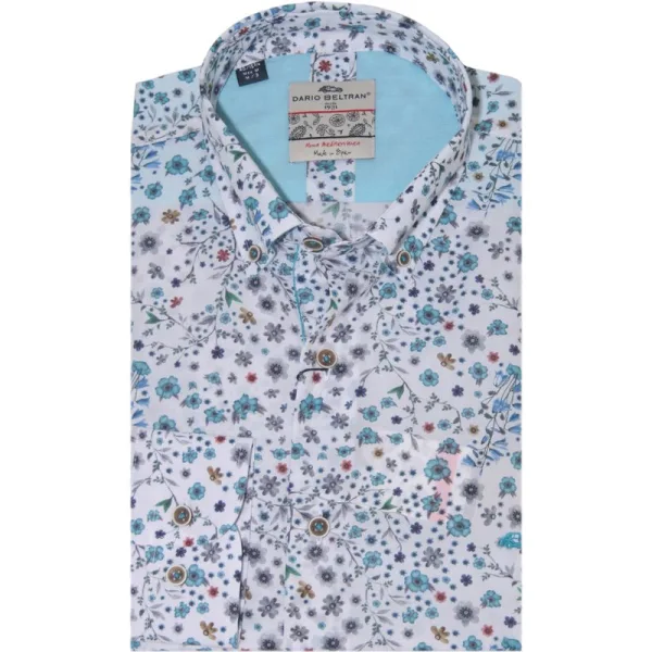 Casual heren shirt met een allover bloemenprint van Dario Beltran. Modern fit Borstzakje 100% Katoen