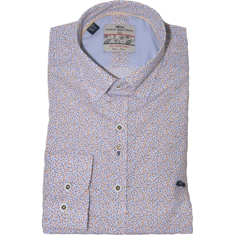 Heren overhemd met een fijn gebloemd allover dessin van Dario Beltran. Modern fit 50% Katoen/ 50% P{polyester