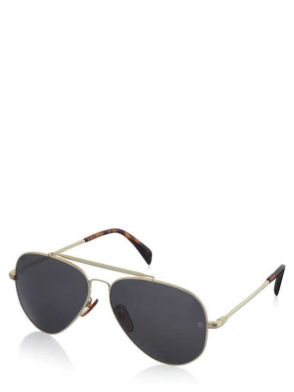 100% Metaal; David Beckham zonnebril; Model: DB 1004/S J5G62IR; Brilvorm: Piloot; Kleur van het frame: Goud; Kleur van de lenzen: Donkergrijs; Tinteniveau: Categorie 3 (donker), UV-bescherming; Afmetingen (mm): 62 - 14 - 150; David Beckham logo details; De etui kan variëren afhankelijk van het model; Kleuren (op de afbeeldingen) kunnen iets verschillen; -----------------------------------; Algemene gebruiks- en veiligheidsinformatie: Zonnebrillen – afhankelijk van het model – zijn niet voor alle soorten lichtomstandigheden en/of activiteiten (inclusief wegverkeer) even geschikt en kunnen deels zelfs niet toegestaan zijn. Houd uzelf hiervan op de hoogte, evalueer het juiste gebruik en handel verantwoordelijk; Bepaalde gekleurde lenzen (blauw, rood, roze, paars, geel, oranje enz.) kunnen de waarneming van verkeers- en/of remlichten enz. in bovenmatige mate vervormen; Bepaalde (grotere) monturen en/of pootjes kunnen het uitzicht op de omgeving vervormen en moeten met voorzichtigheid worden gebruikt en kunnen voor wegverkeer en andere activiteiten niet zijn toegestaan; NIET geschikt voor omstandigheden met weinig licht of slechte zichtbaarheid (schemering, nacht enz.); NIET voor het direct bekijken van de zon of bij waarnemingen van zonsverduisteringen; NIET voor bescherming tegen kunstmatig licht (bijv. solarium); NIET voor mechanische werkveiligheid en/of gebruik tegen mechanische impact; NIET gebruiken bij defecte of beschadigde delen (lenzen, filters, frames …); Modellen met scherpe (en/of relatief uitstekende) elementen enz. moeten alleen met voorzichtigheid en een veilige afstand van de respectieve omgeving, inclusief andere mensen, worden gebruikt; De modelkeuze (inclusief de categorie/tinteniveau) moet afhankelijk zijn van de lichtomstandigheden en de activiteit; Voor aanvullende informatie kunt u eventuele documenten/papieren checken die bij de bril komen, evenals andere geschikte bronnen.