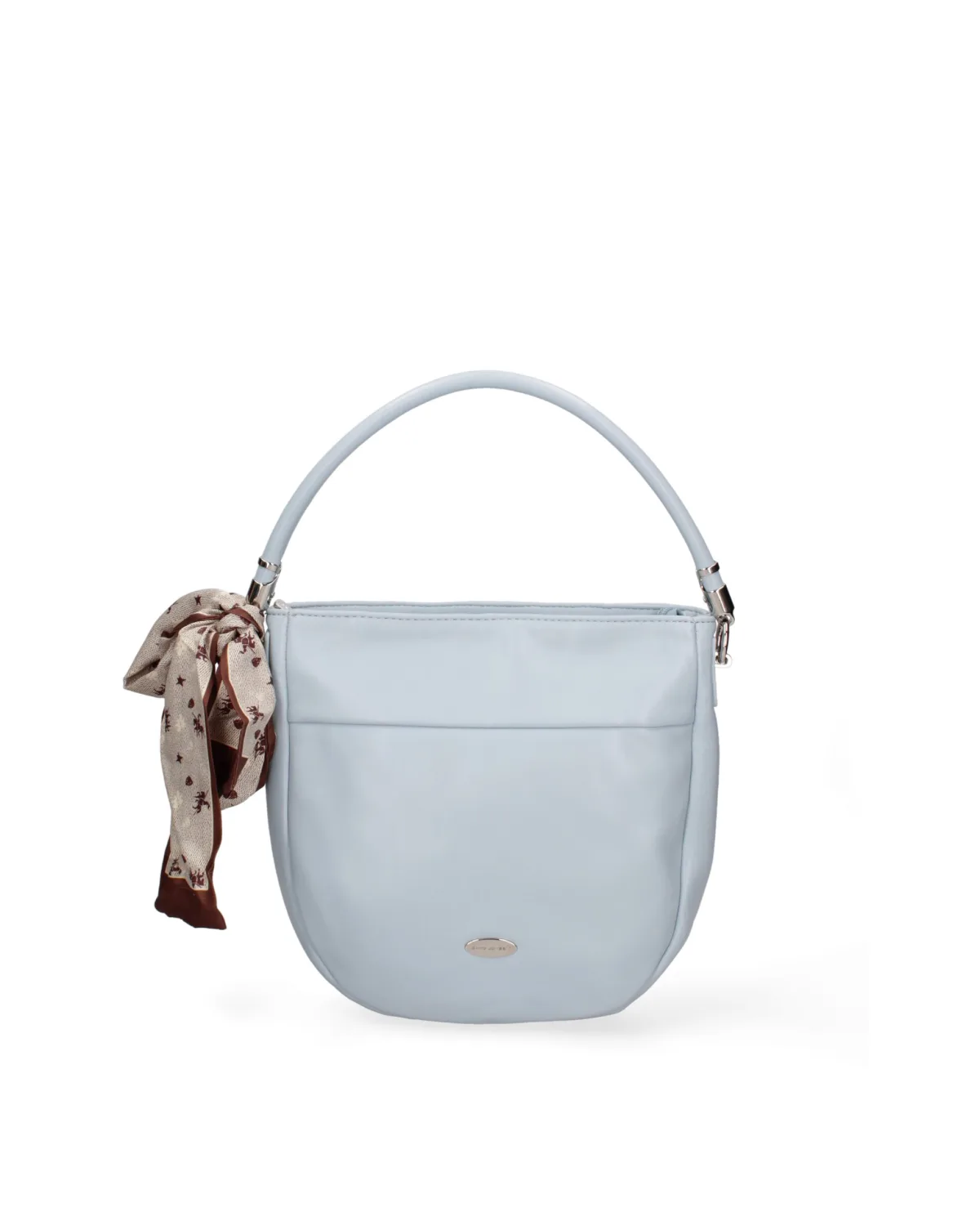 Dameshandtas met ritssluiting. één met ritssluiting en één open binnenzak. één achterkant met externe zakken met ritssluiting. verstelbare en afneembare schouderband. in geregenereerd leren handvat. één binnenvak. Handtas Dames extern materiaal. gevoerd met polyester binnenkant. Afmetingen: 20x24x6 cm. Modeproduct