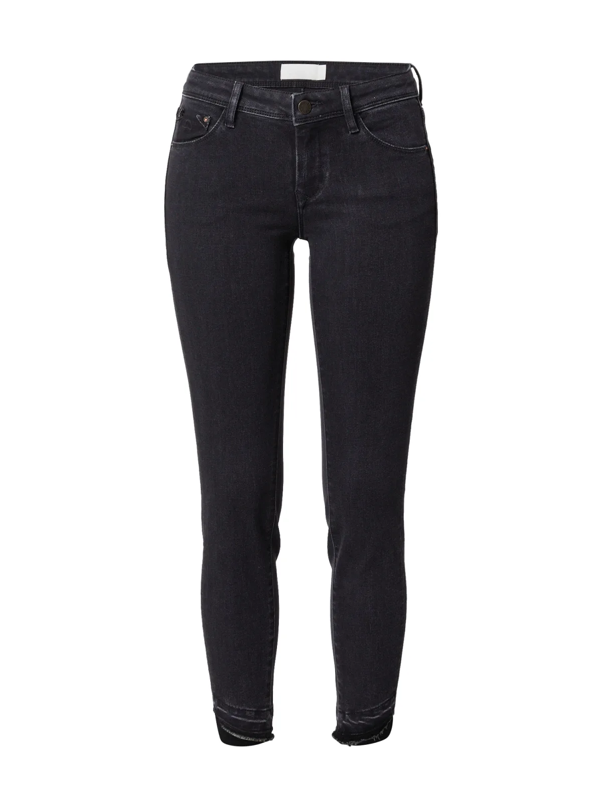 Design: Open randen, Ritssluiting, 5-pocket-style; Type sluiting: Ritssluiting; Materiaal: Denim; Motief: Effen; Extra's: Studs, Op staal naden, Used-look, Vaste grip, Riemlussen, PETA-Approved Vegan; Wassing: Rinsed/dark washed; Lengte: 7/8 lengte; Pasvorm: Skinny; Taillehoogte: Mid waist