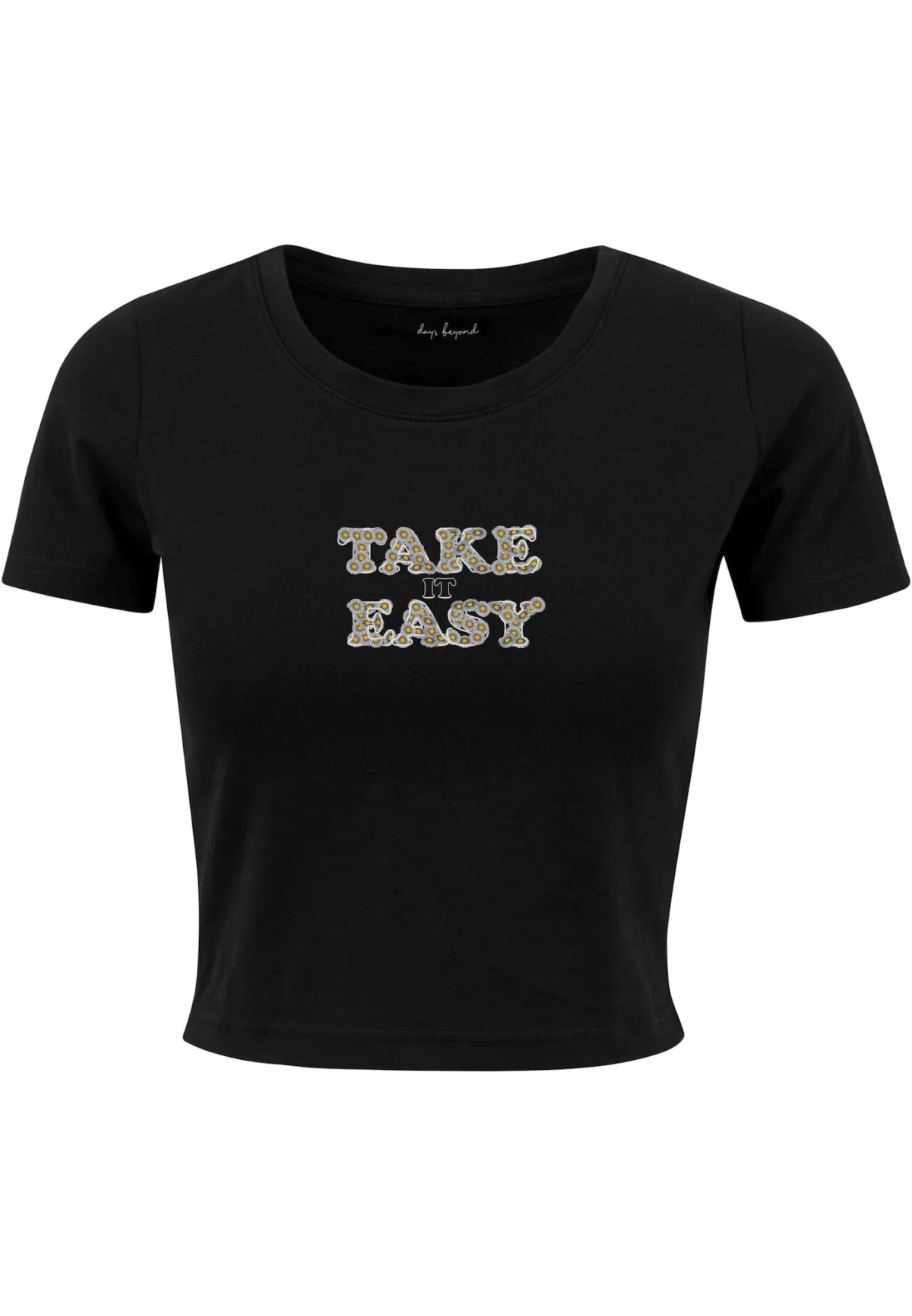 - Bij aboutyou.nl kun je Days Beyond Shirt 'Take It Daisy' goudgeel / zwart / wit kopen voor slechts €11,99 , dat is 16% goedkoper dan bij Sneakin (€14,32).