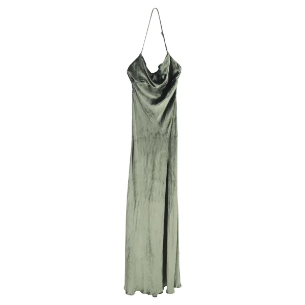 De Attico Leticia halterjurk in olijfgroen fluweel