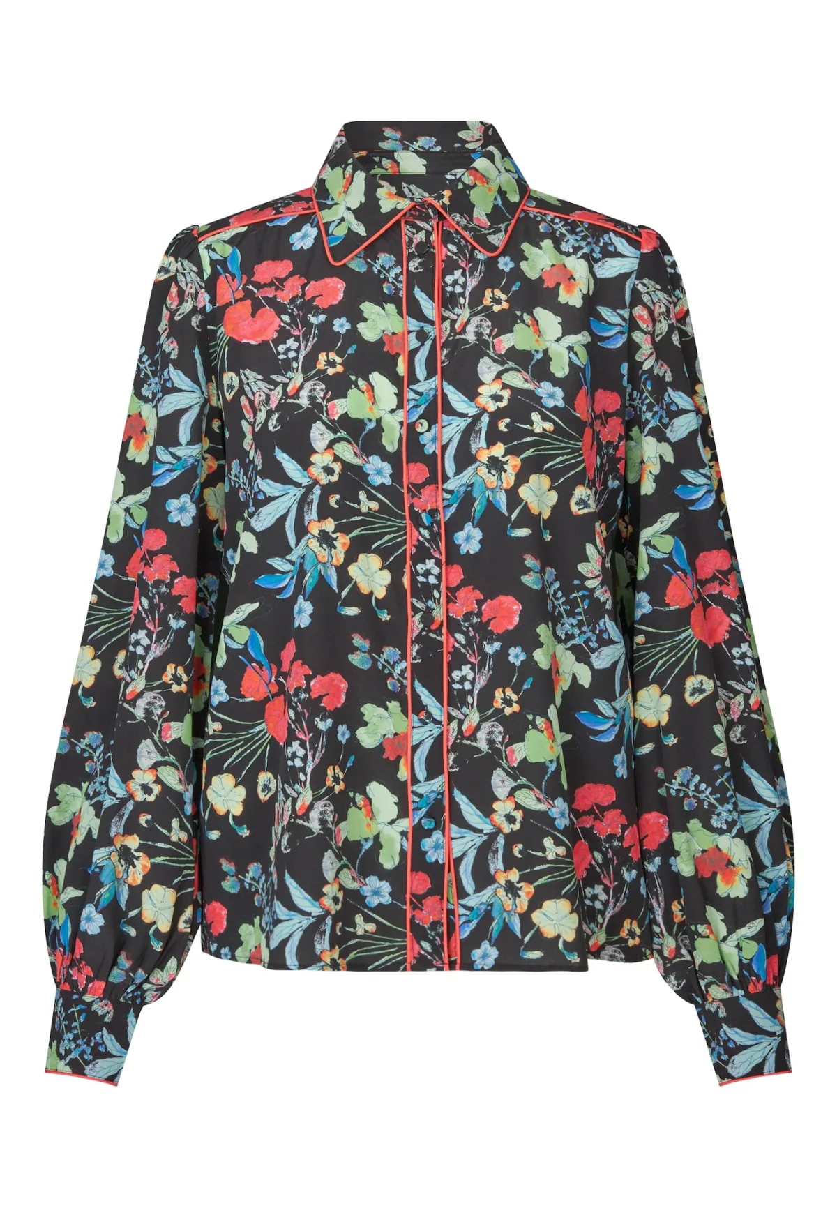 Blouse type: Klassieke blouse; Design: Knop sluiting; Motief: Bloemenprint; Kraag: Kentkraag; Extra's: All-over patroon; Pasvorm: Losse pasvorm; Armlengte: Lange mouw; Lengte: Normale lengte