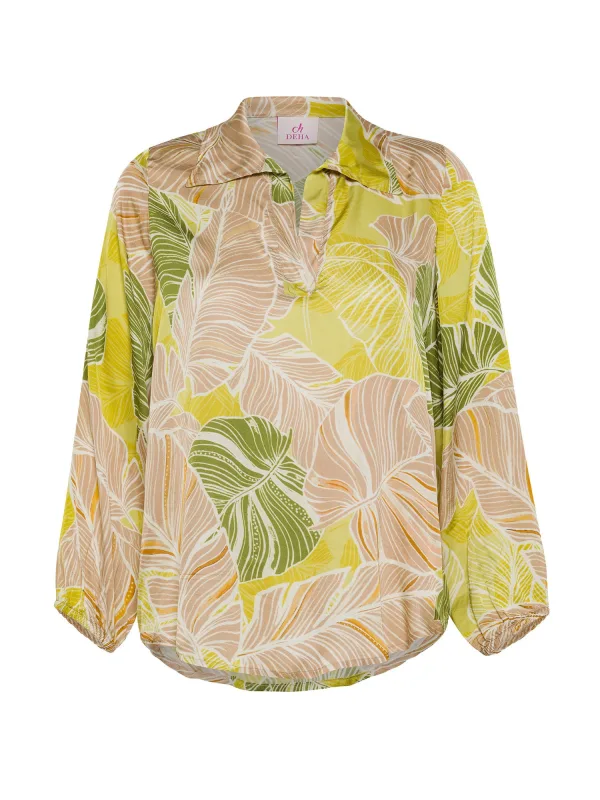Blouse type: Wijde blouse; Design: Gevoerde zoom/rand, Ronde zoom; Materiaal: Satijn; Extra's: All-over patroon; Pasvorm: Normale pasvorm; Armlengte: Lange mouw; Lengte: Normale lengte