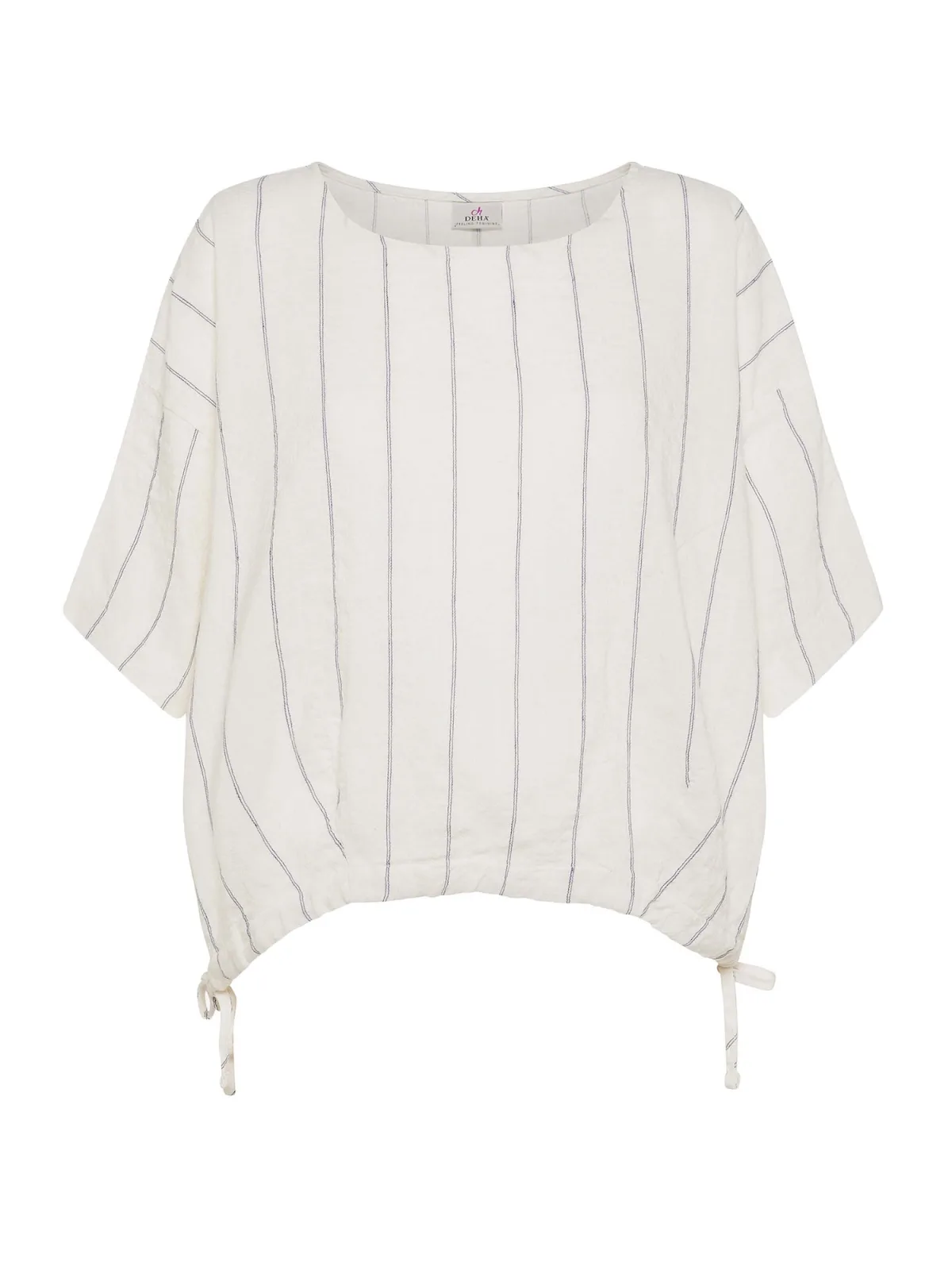Blouse type: Blouseshirt; Design: Overcut schouder; Materiaal: Linnen; Halstype: Ronde hals; Motief: Gestreept; Kraag: Zonder kraag; Extra's: Trekkoord in de boord; Pasvorm: Losse pasvorm; Armlengte: Halve mouw; Lengte: Normale lengte