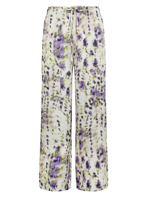 Design: Taille met trekkoord, Zakken aan de zijkant; Materiaal: Viscose; Motief: Bloemenprint; Details: Gedrapeerd; Extra's: All-over patroon, Gladde stof; Lengte: 7/8 lengte; Pasvorm: Wide leg; Taillehoogte: Mid waist