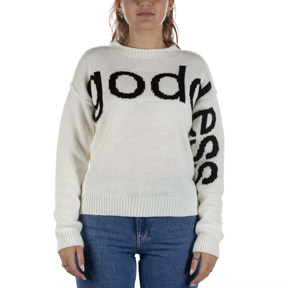 Specificaties: Trui met ronde hals van een zware alpacawolmix, gebreid met jacquardopschrift en geribde zomen. Product 100% gemaakt in Italië Pasvorm: Normaal Het model draagt maat: XS Modelhoogte: 170 cm