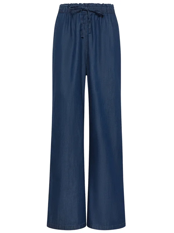 Design: Taille met trekkoord, Elastische taille/zoom; Type sluiting: Elastische band; Materiaal: Denim; Motief: Effen; Details: Gedrapeerd; Extra's: Op staal naden; Wassing: Blauw denim; Lengte: Lang/maxi; Pasvorm: Wide leg; Taillehoogte: Mid waist