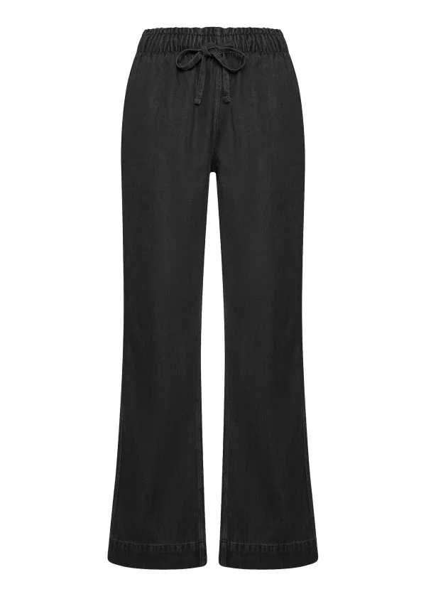 Design: Taille met trekkoord; Materiaal: Denim; Motief: Effen; Details: Gedrapeerd; Extra's: Vaste grip; Wassing: Colored denim; Lengte: Lang/maxi; Pasvorm: Wide leg; Taillehoogte: High waist