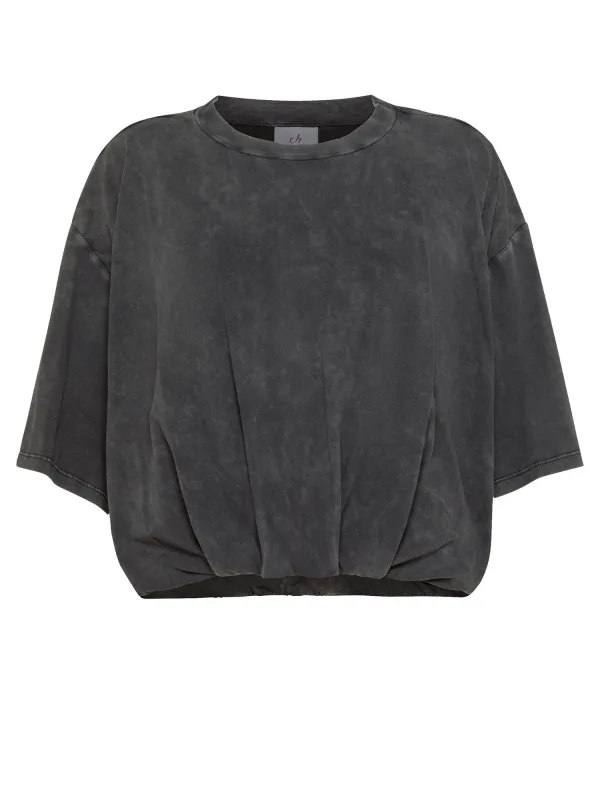 Design: Gevoerde zoom/rand; Materiaal: Jersey; Halstype: Ronde hals; Motief: Mélange; Details: Gedrapeerd; Extra's: Label patch/label flag, Op staal naden; Pasvorm: Normale pasvorm; Armlengte: Halve mouw; Lengte: Normale lengte