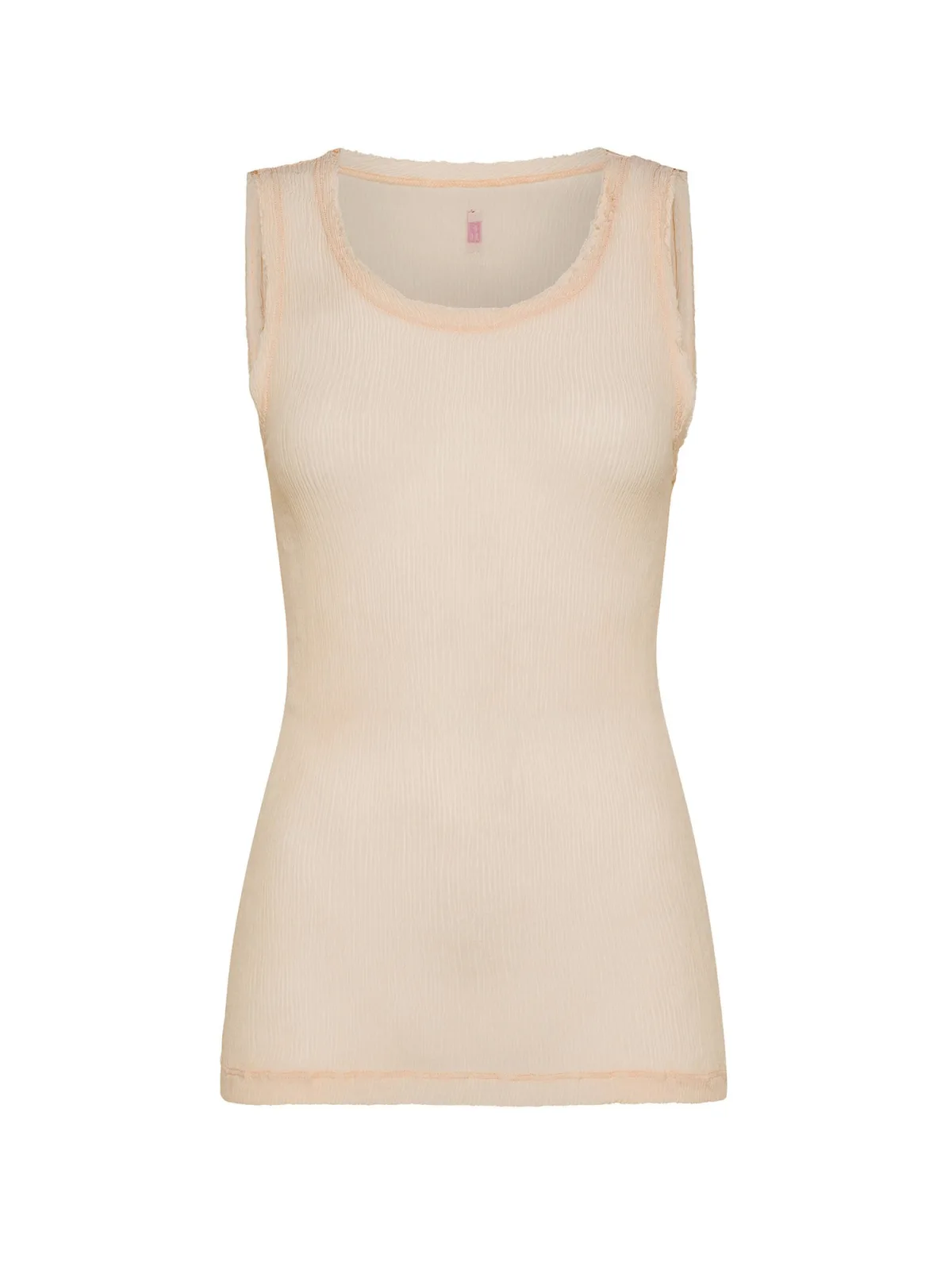 Design: Gevoerde zoom/rand; Materiaal: Viscose; Halstype: Ronde hals; Motief: Effen; Soort bandjes: Brede bandjes; Extra's: Licht transparant, Voelt zacht aan; Pasvorm: Slanke pasvorm; Armlengte: Mouwloos; Lengte: Normale lengte
