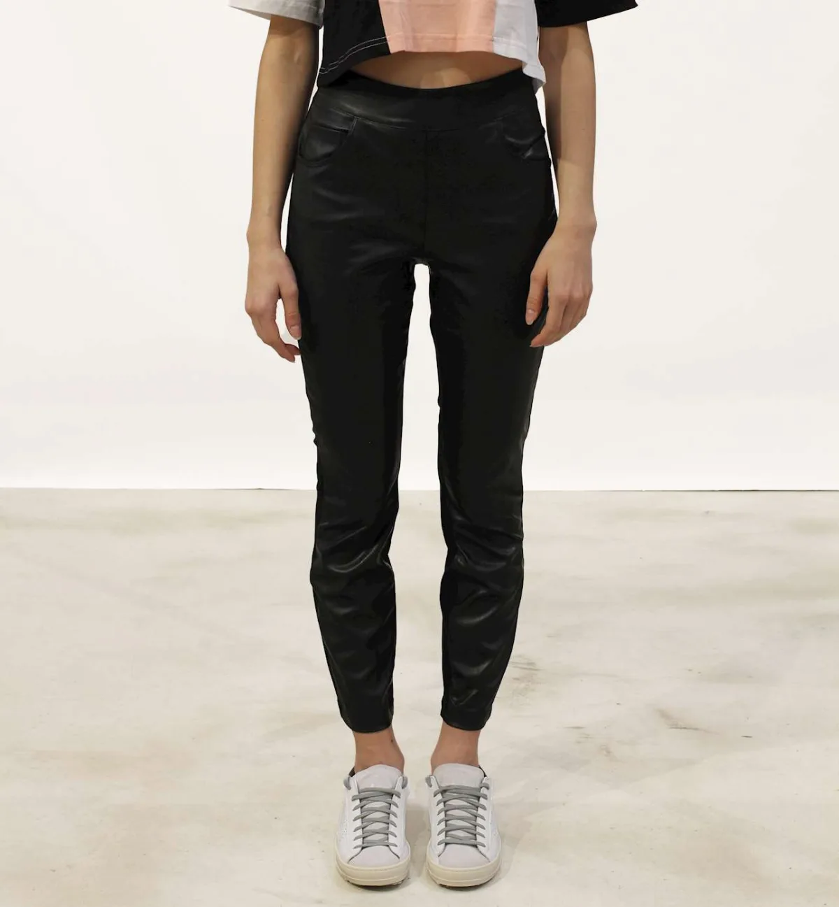 Specificaties: Legging met voorkant van imitatieleer, ritssluiting aan de zijkant en nepgulp Pasvorm: Slank Model draagt maat: S Lengte model: 170cm