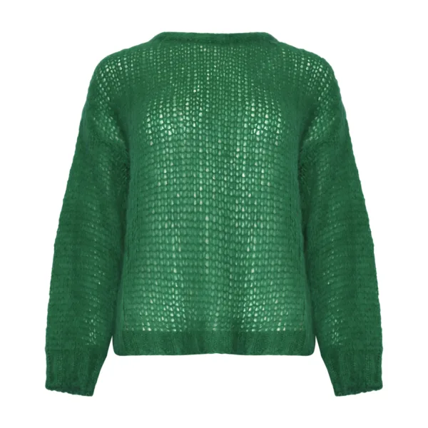 De Delta Sweater is een superzachte trui. Hij is gebreid met grote naalden, waardoor de trui er licht en luchtig uitziet. Bovendien heeft de trui grote mouwen, wat zorgt voor een zeer vrouwelijke en losse pasvorm. Delta heeft geribbelde manchetten, een geribbelde zoom en een geribbelde kraag.