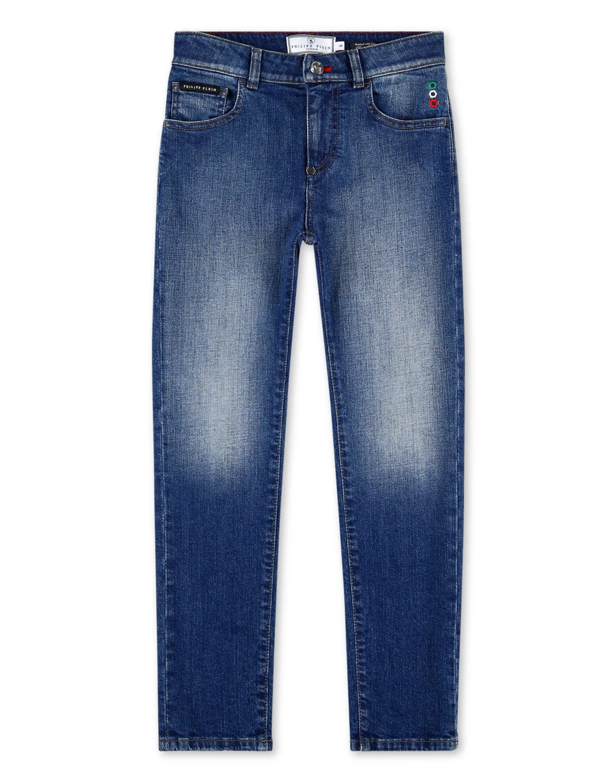 Klassiek denim in een nieuw jasje voor de volgende generatie. Deze Plein Kids jeans combineren comfort, stijl en alledaagse duurzaamheid. Op maat gemaakt voor beweging, met een geraffineerd designerdetail. Moeiteloos te combineren met sneakers en een statement T-shirt Zachte katoenmix biedt soepel draagcomfort, de hele dag door Subtiele vervaging voor een coole, doorleefde look Handtekeningborduursel voegt een stijlvol accent toe Een veelzijdige basic voor verhoogde casual outfits