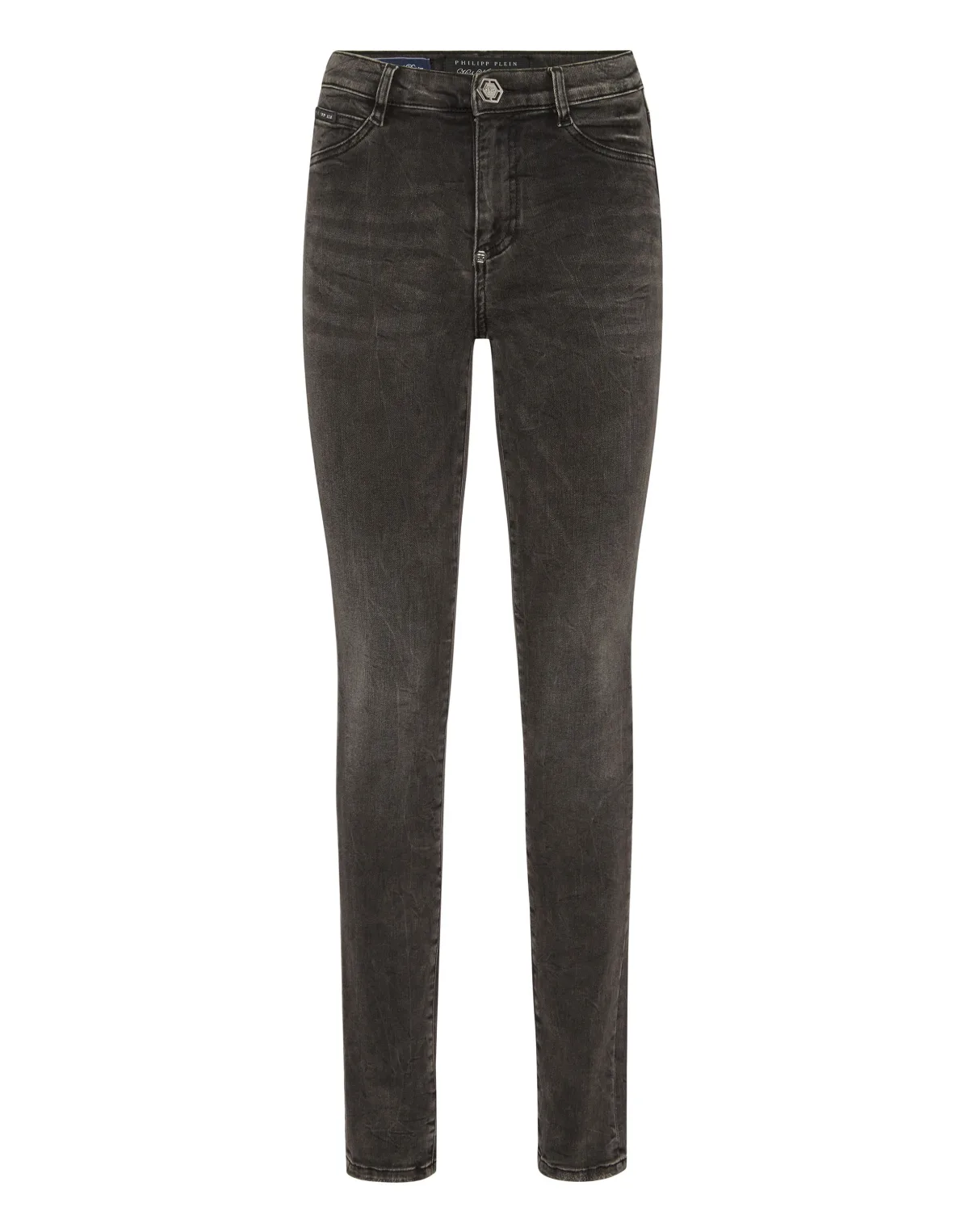Style and originality with these denim 5 pocket jeggings featuring a basic fit and shimmering elements. Find out more. Stretch denim Embroidery at the right rear pocket Leather label at the back Single metal button fastening Fit: High Waist