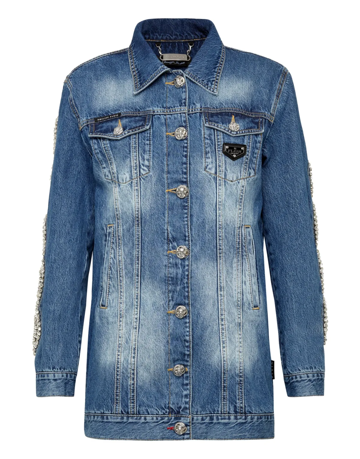 Verfraaid Dit met kristallen versierde spijkerjack geeft een gedurfde draai aan je casual garderobe door klassiek vakmanschap te combineren met sprankelende elegantie. Vervaardigd van eersteklas denim voor een tijdloze look en duurzame slijtage. Versierd met ingewikkelde kristallen details voor een luxueuze touch. Voorzien van klepzakken aan de voorzijde en een gestructureerd silhouet. Perfect om over casual of semi-formele outfits te dragen. Verbetert elke look met zijn unieke mix van comfort en glamour.