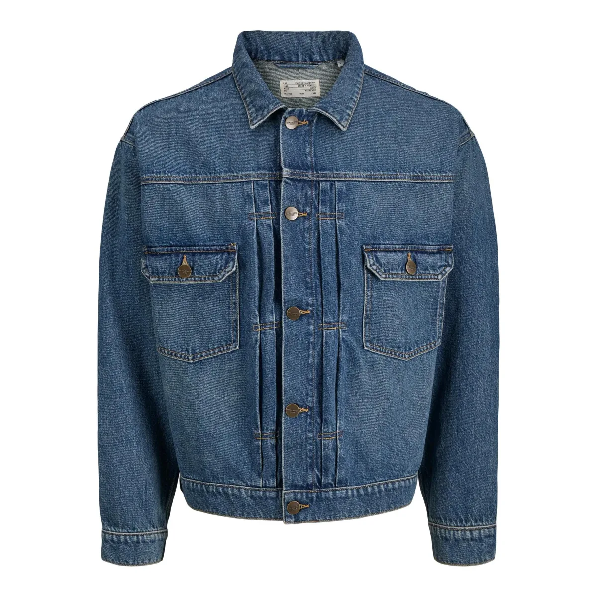 Design: Overcut schouder, Turn-down kraag, Borstzak; Type sluiting: Knoopsluiting; Voering: Niet gevoerd; Materiaal: Denim; Motief: Effen; Extra's: Contrasterende naden, Gewassen effect, Vaste grip; Pasvorm: Losse pasvorm