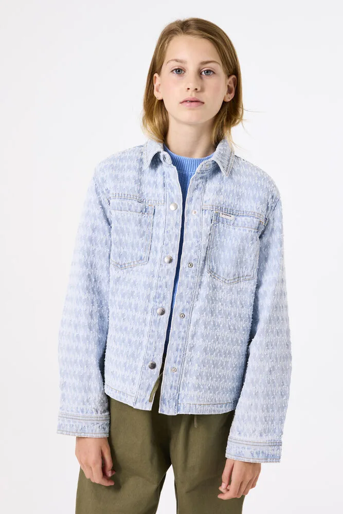 Cropped denim jack met needle punch en borstzakken. Met dit item ben je helemaal on-trend! Dit jack heeft lange mouwen, een drukknoopsluiting, een kraagje en een generous fit. Dit item is gemaakt van 100% katoen. Better Cotton is een initiatief dat zich wereldwijd inzet voor betere omstandigheden in de katoenindustrie.