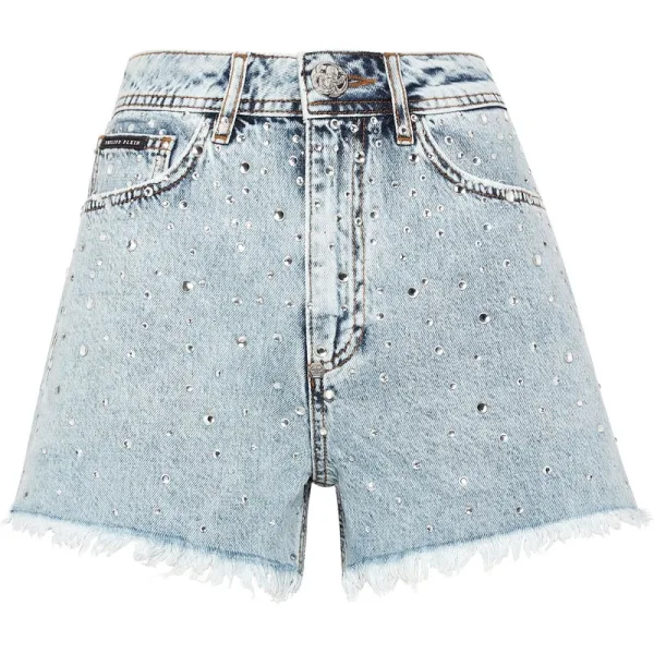 Verfraaid Als je origineel wilt zijn, raden we je deze stone washed denim 5 pocket hot pants met geplaatste slijtage en kostbare details aan. Ontdek meer. Distressed stone washed denim Strass-elementen Label met juwelenlogo genaaid op de achterkant van de tailleband Enkele metalen juwelenknoop Pasvorm: High Rise