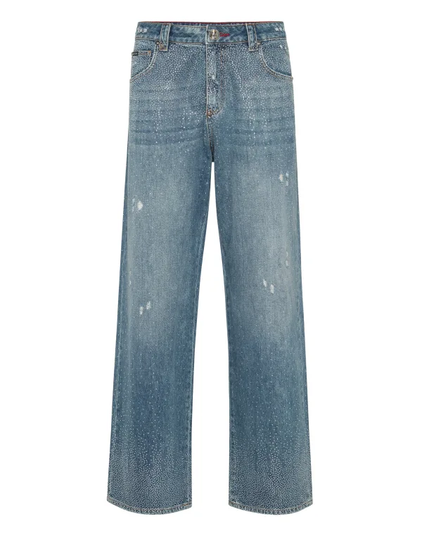 Verfraaid For your outfit we recommend these jeans featuring a comfortable and really cool fit. Wear-and-tear denim Crystal applications with a degradé effect Single metal button fastening Logo Patch sewn on the right Fit: Beach Boy