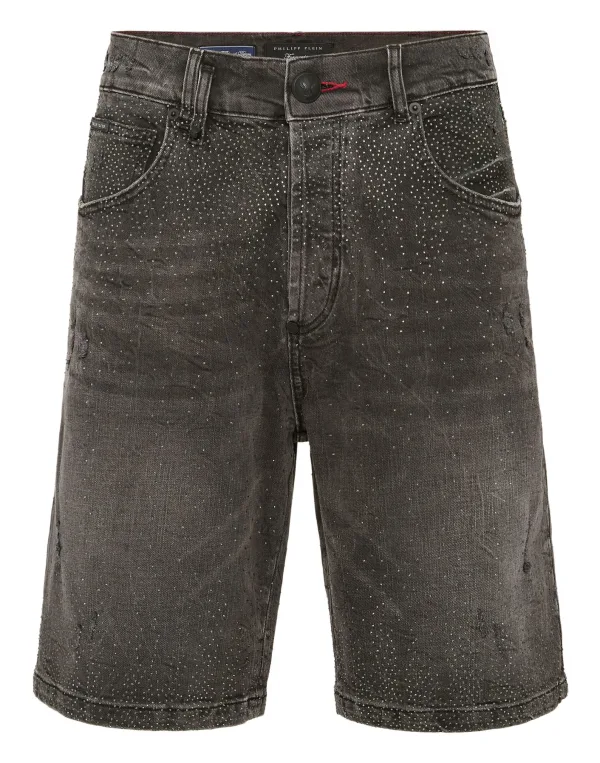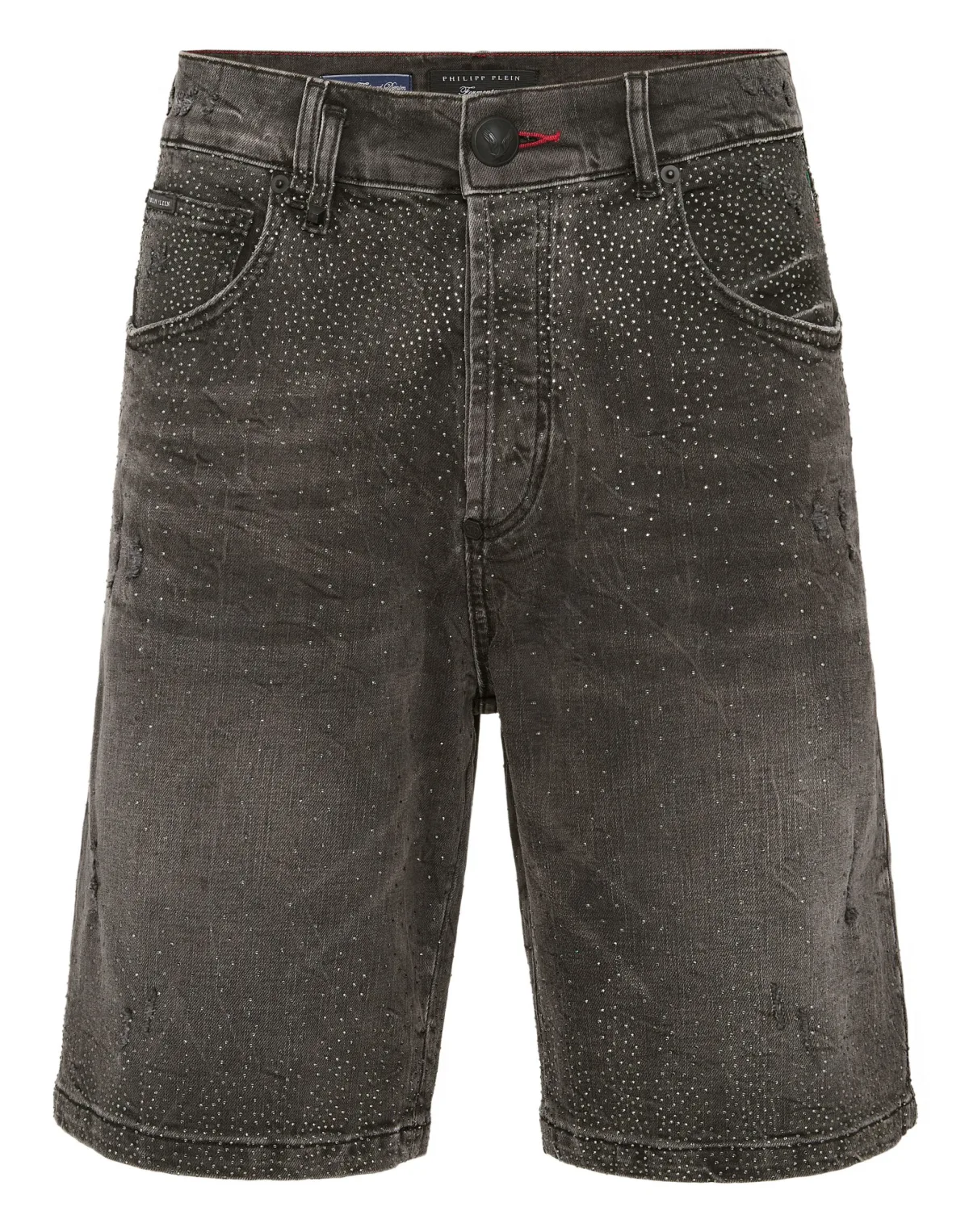 Forget about the routine and choose something totally original like these denim bermudas with a strong character. Used effect denim Rhinestones decoration Single metal button Logoed patch sewn on the back Fit: Formentera