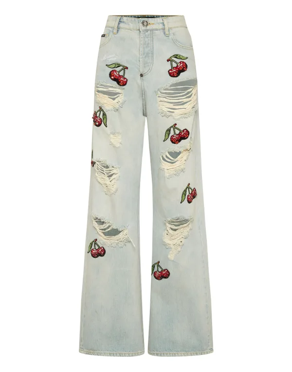 Denim Trousers Skater Fit Cherries Destroyed
