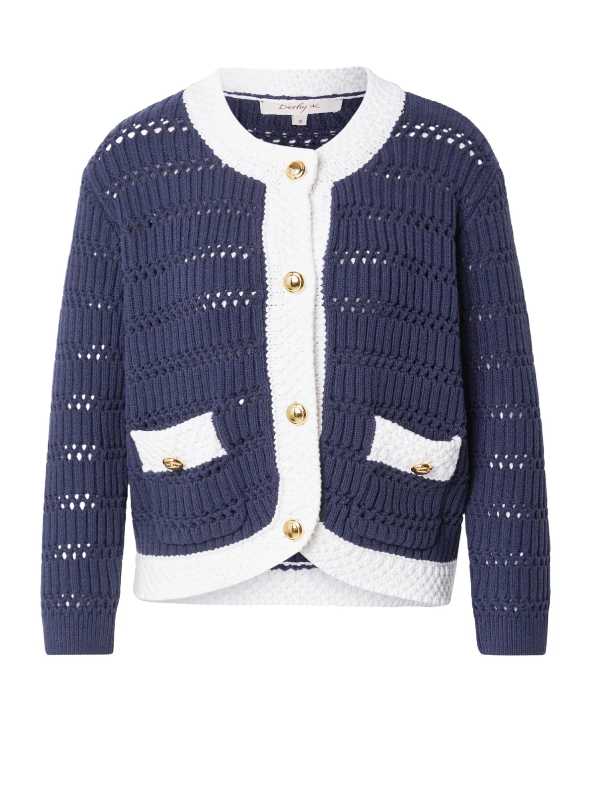 Derhy Gebreid vest ‘PIA GILET MAILLE’ navy / wit Prijzen