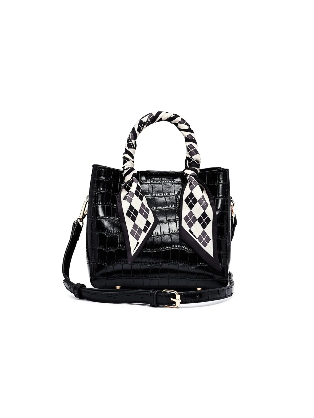 Design: Ruim hoofdvak; Type sluiting: Ritssluiting; Materiaal: Imitatieleder; Motief: Effen; Materiaal: Imitatieleer; Extra's: Reptile look; Maat: Klein; Hengsellengte: Lange schouderriemen, Korte schouderriemen