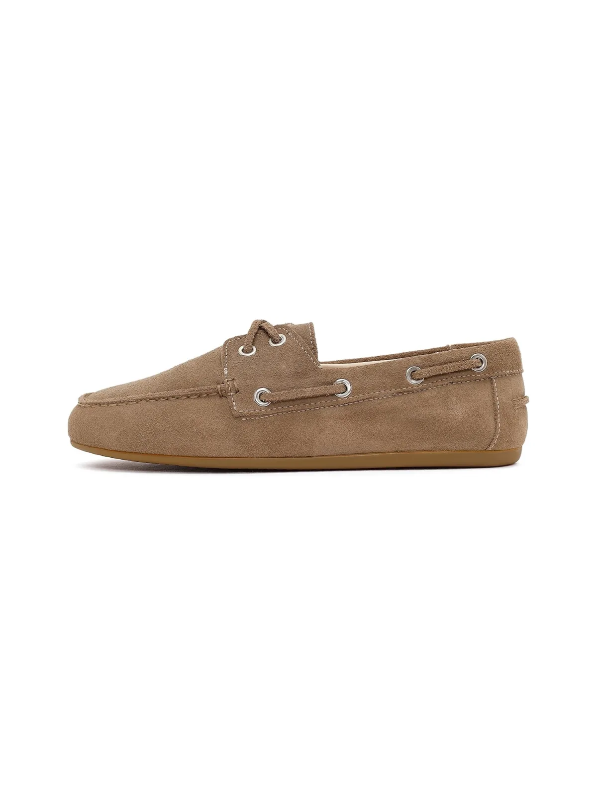 Design: Versterkte hak; Type sluiting: Snoersluiting; Materiaal: Leer; Motief: Effen; Materiaal: Suède; Schoenneus: Ronde neus; Extra's: Flexibele zool; Hakhoogte: Platte hak (0-3 cm)