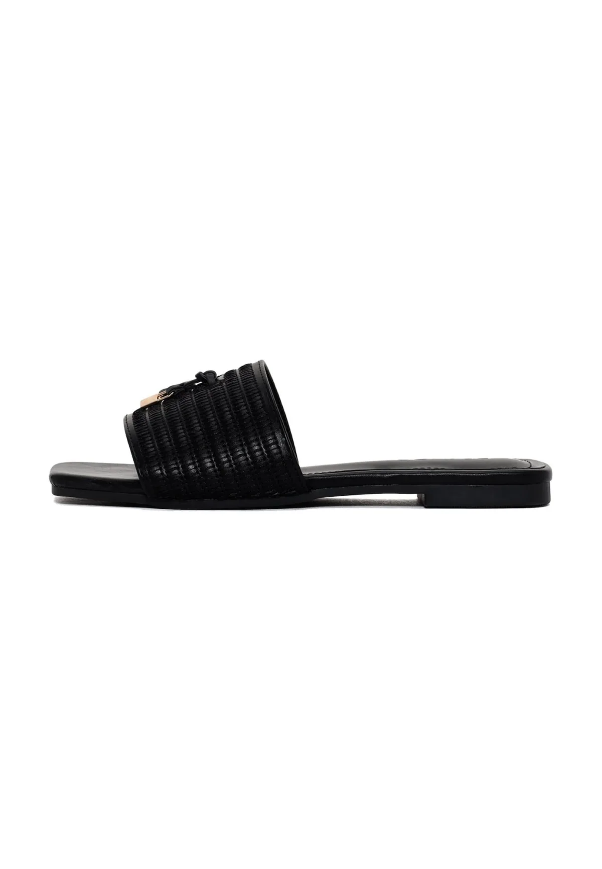 Design: Elastische inserts; Motief: Effen; Materiaal: Imitatieleer; Schoenneus: Open toe; Extra's: Applicaties, Gestructureerd oppervlak; Hakhoogte: Platte hak (0-3 cm)