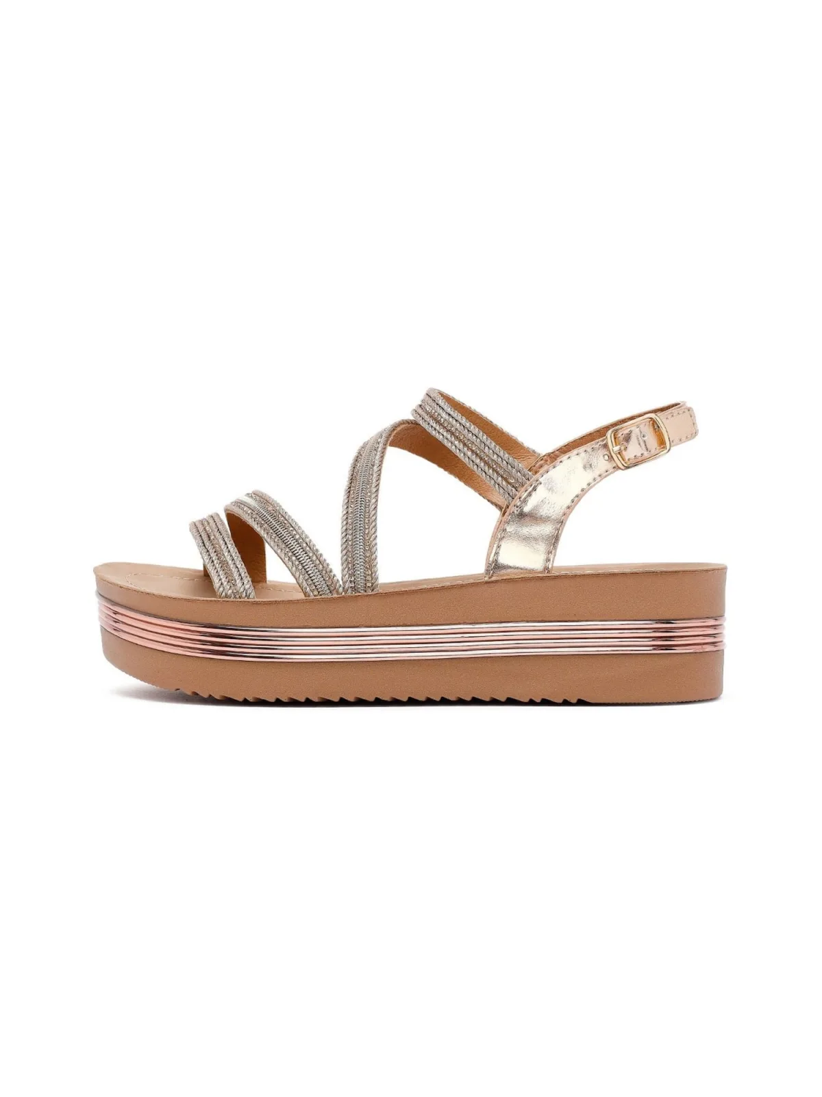 Type sluiting: Riemsluiting; Plateau: Met plateau; Materiaal: Imitatieleer; Schoenneus: Open toe; Extra's: Contrasterende naden; Hakhoogte: Platte hak (0-3 cm)