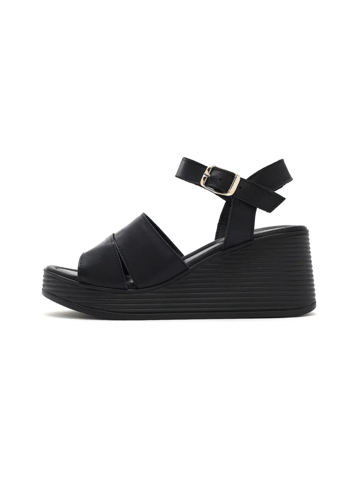 Design: Profielzolen; Type sluiting: Riemsluiting; Type hak: Sleehak; Materiaal: Leer; Motief: Effen; Plateau: Met plateau; Materiaal: Glad leer; Schoenneus: Open toe; Extra's: Stevige stof; Hakhoogte: Middelhoge hak (3-7 cm)