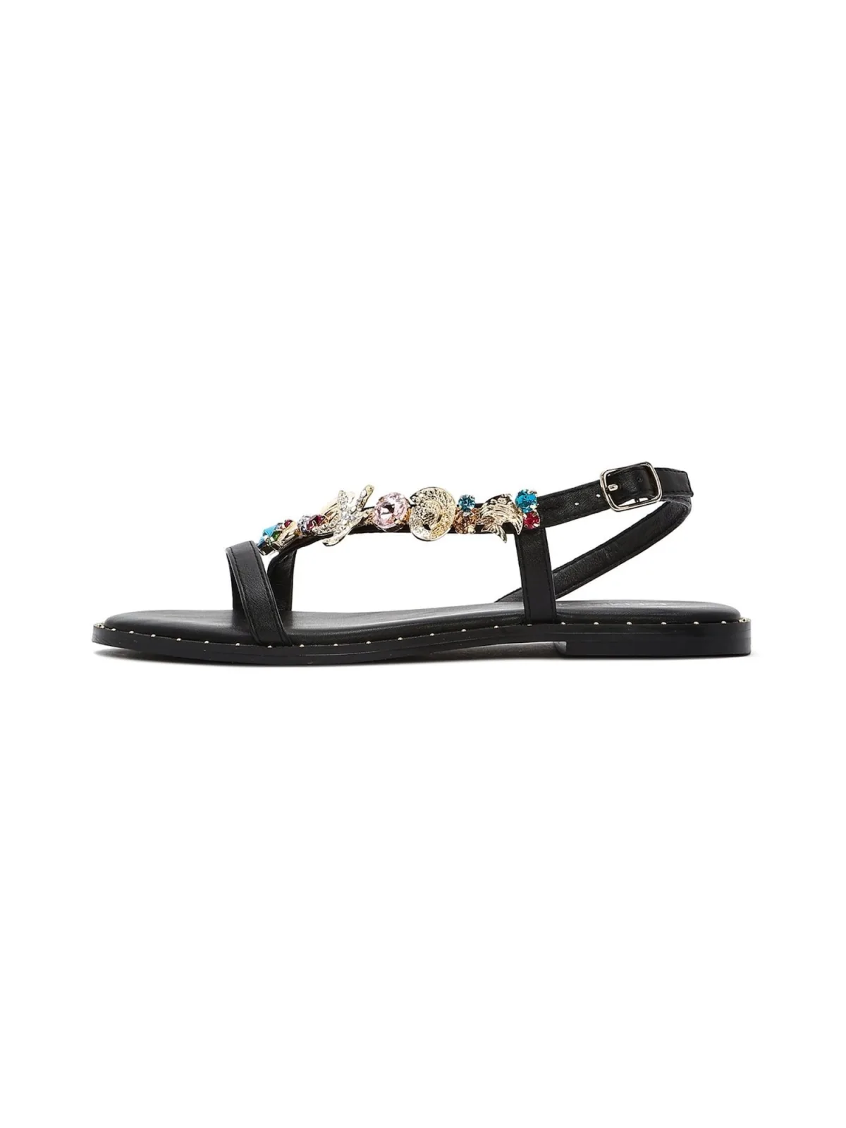 Design: Verstelbare riemen; Type sluiting: Riemsluiting; Materiaal: Imitatieleer; Schoenneus: Open toe; Extra's: Met halfedelstenen; Hakhoogte: Platte hak (0-3 cm)