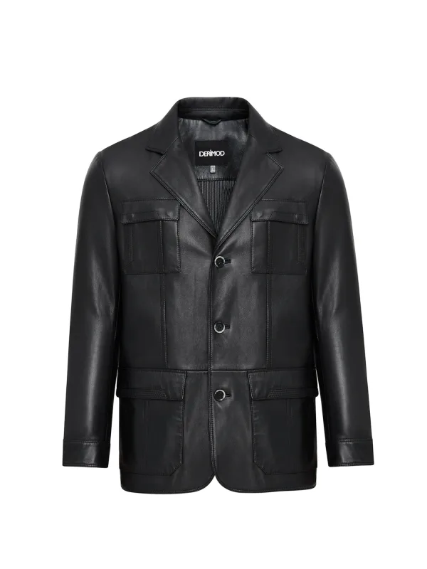 Design: Knop placket, Revers kraag; Type sluiting: Knoopsluiting; Voering: Licht gevoerd; Materiaal: Leer; Motief: Effen; Extra's: Stevige stof; Pasvorm: Normale pasvorm