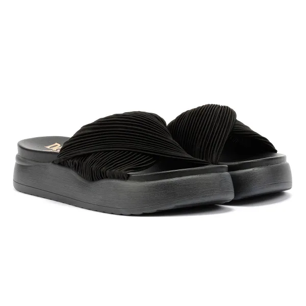 Geplooide platform sandaal ontworpen voor stijl en comfort. Heeft een chique geplooid satijnen bovendeel en een lichtgewicht Desert Dreamer gevormde herstelinlegzool die superieure demping en hele dag ondersteuning biedt. Perfect voor casual zomerse kleding.