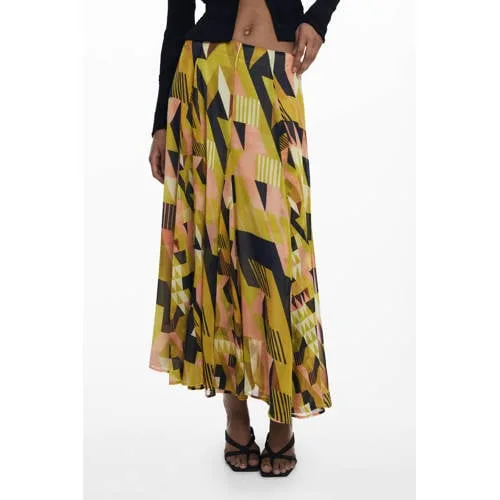 Deze Desigual rok heeft een print en een A-lijn model. De rok is gemaakt van polyester met plooien en een blinde ritssluiting. Het model is lang.