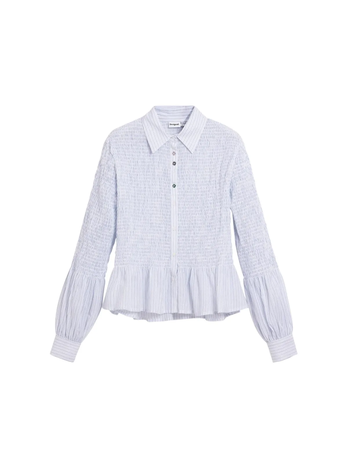 Blouse type: Klassieke blouse; Design: 1-knoops manchetten; Type sluiting: Knoopsluiting; Materiaal: Katoen; Motief: Gestreept; Kraag: Kentkraag; Details: Peplum, Gedrapeerd; Extra's: Voelt zacht aan; Pasvorm: Slanke pasvorm; Armlengte: Lange mouw; Lengte: Normale lengte