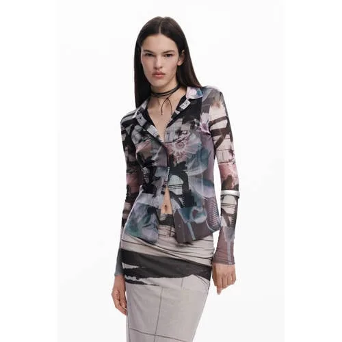 Deze blouse van Desigual is gemaakt van mesh en heeft een klassieke kraag. De lange mouwen en knoopsluiting geven een stijlvolle uitstraling. Let op: dit artikel valt klein, bestel een maat groter.