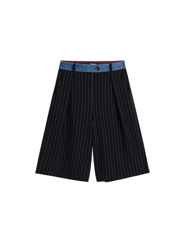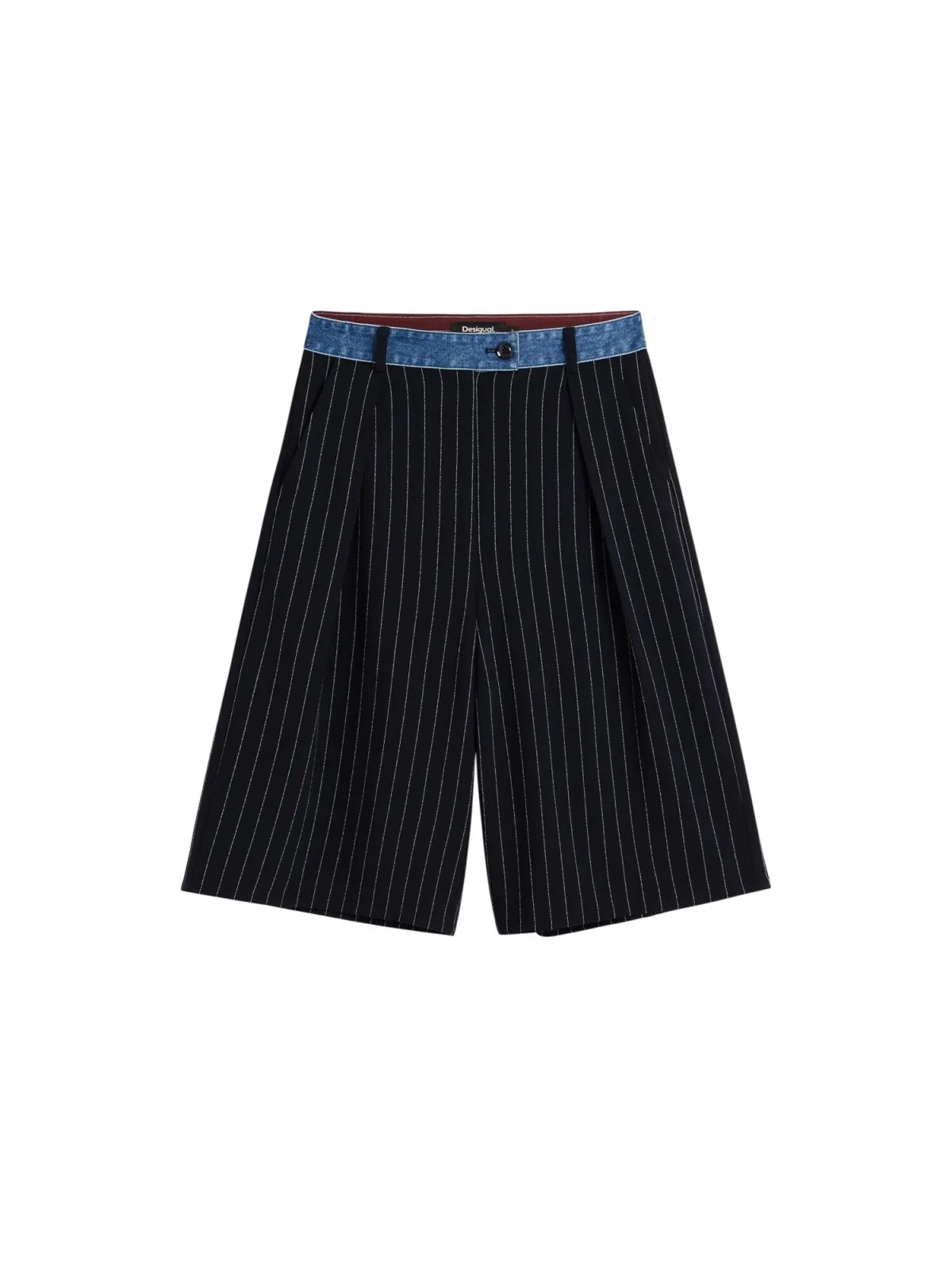 Design: Achterzak, Paspelzak, Zakken aan de zijkant; Motief: Krijtstrepen; Details: Plooien; Extra's: All-over patroon, Riemlussen; Lengte: Knielengte; Pasvorm: Wide leg; Taillehoogte: High waist