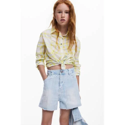 Deze lichtblauwe denim korte broek voor meisjes van Desigual is een praktische basic met opvallende details. De short heeft de klassieke 5-pocket look in light blue denim en valt daardoor makkelijk te combineren met T-shirt, top of sweater. De subtiele slijtage en borduursels geven het ontwerp extra karakter, zonder dat het te druk oogt. Gemaakt van 96% katoen / 2% viscose / 1% linnen / 1% modal voelt de stof soepel en comfortabel aan tijdens schooldagen, speelafspraken en weekenduitjes.Kenmerken van deze denim short Kleur: light blue denim, een lichte basis voor allerlei combinaties Materiaal: 96% katoen / 2% viscose / 1% linnen / 1% modal voor een zachte, prettig aanvoelende stof Model: korte broek in denimstijl, ideaal voor schoolkind en tiener Sluiting: rits- en knoopsluiting aan de voorkant 5-pocket model: twee achterzakken, twee voorzakken en een kleingeldzakje Details: lichte slijtage en borduursels voor een eigentijdse uitstraling Collectie: onderdeel van de Daily collectie, geschikt voor dagelijks dragenVoor elke dag en elk seizoenIn de zomer draag je deze denim short met een luchtige top en sandalen. Op frissere dagen combineer je de korte broek met sneakers en een hoodie of een fijn vest. Zo blijft de short het hele jaar door een vaste waarde in de kledingkast.Desigual voor kidsDesigual staat bekend om creatieve kinderkleding met opvallende details. De ontwerpen combineren comfort met herkenbare Desigual accenten, waardoor elk item een eigen stijl heeft en kinderen zich vrij kunnen bewegen.Een veelzijdige denim short die goed past in dagelijkse outfits.