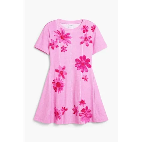Deze roze Desigual meisjes jurk brengt kleur in elke dag. De jurk heeft een losse A-lijn pasvorm die soepel om het lichaam valt, ideaal voor schooldagen, feestjes of een dagje weg. De vrolijke bloemenprint past goed bij de speelse stijl van Desigual en geeft meteen een opvallende look, zonder dat het druk oogt. Door de ronde hals en korte, rechte mouwen voelt de jurk luchtig en comfortabel.Details die het verschil maken Gemaakt van zacht katoen met wat stretch voor extra bewegingsvrijheid A-lijn model dat niet knelt en fijn meebeweegt met elke stap en sprong Korte mouwen met rechte inzet voor een ontspannen fit Roze basis met speelse bloemenprint voor een levendige uitstraling Ronde hals die comfortabel sluit zonder te strak te zitten Zonder sluiting, zodat de jurk eenvoudig over het hoofd aan en uit gaat Geschikt voor schoolkinderen en tieners, ideaal als dagelijkse favorietElke dag gemakkelijk aankledenDe jurk trek je in één beweging aan, zonder knopen of ritsen. In combinatie met sneakers en een vest is dit een praktische outfit voor naar school. Op warmere dagen staat de jurk mooi met sandalen of slippers. De soepele stof voelt prettig aan op de huid en biedt genoeg stretch om vrij te spelen en te bewegen.Desigual voor kinderenDesigual staat bekend om kleurrijke ontwerpen met opvallende prints en speelse details. De kinderkleding is ontworpen met oog voor draagcomfort, zodat elke outfit er niet alleen leuk uitziet, maar ook fijn zit tijdens een drukke dag. Zo krijgen kinderen kleding waarin ze zichzelf kunnen laten zien.Een vrolijke jurk die comfort en kleur samenbrengt in één dagelijks favoriet stuk.