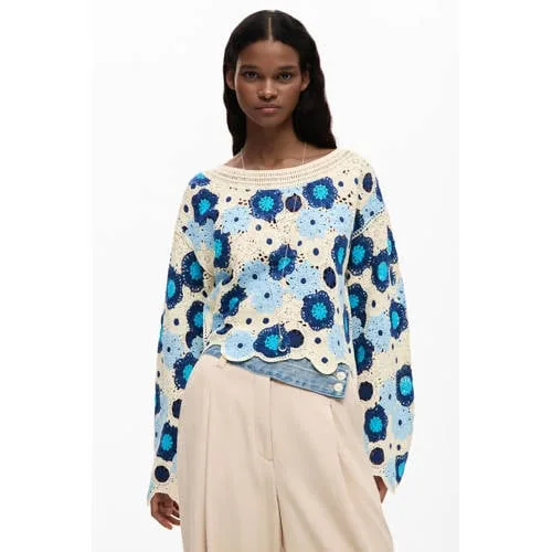 Desigual gebloemde sweater blauw gehaakt Prijzen