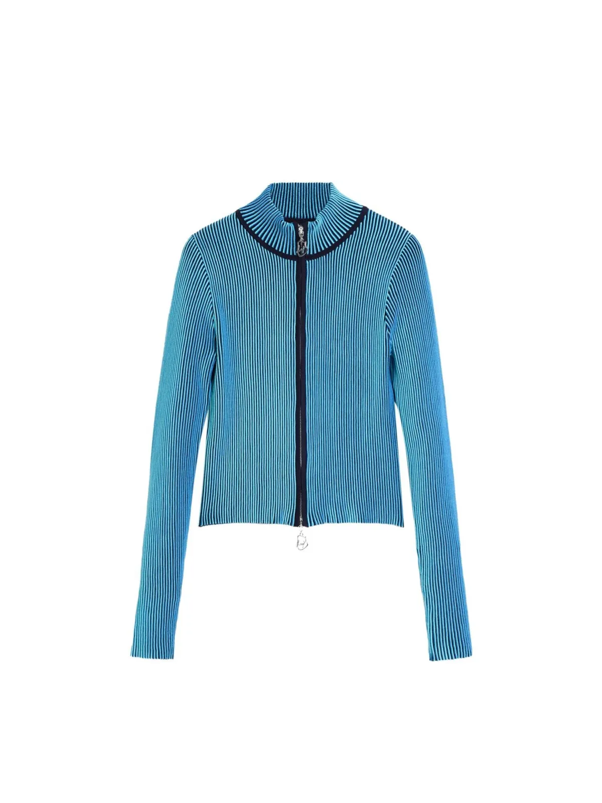 Design: Ritssluiting; Type sluiting: Ritssluiting; Materiaal: Viscose; Halstype: Opstaande kraag; Motief: Gestreept; Extra's: All-over patroon; Pasvorm: Slanke pasvorm; Armlengte: Lange mouw; Lengte: Normale lengte