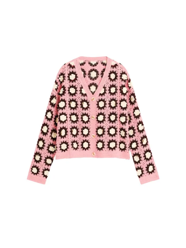 Design: Knop placket, Overcut schouder; Type sluiting: Knoopsluiting; Materiaal: Gehaakt; Halstype: V-hals; Details: Borduursels; Extra's: Met textuur, Voelt zacht aan; Pasvorm: Losse pasvorm; Armlengte: Lange mouw; Lengte: Normale lengte