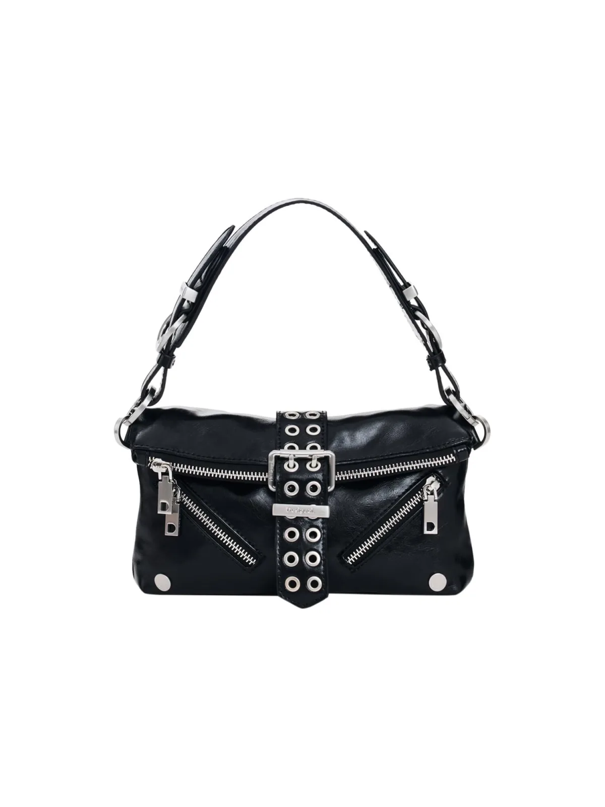 Design: Ruim hoofdvak; Type sluiting: Gesp; Materiaal: Imitatieleder; Motief: Effen; Materiaal: Imitatieleer; Extra's: Studs, Gladde stof; Maat: Klein; Hengsellengte: Lange schouderriemen, Korte schouderriemen