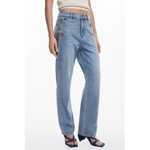 Desigual high waist straight leg jeans medium blue denim